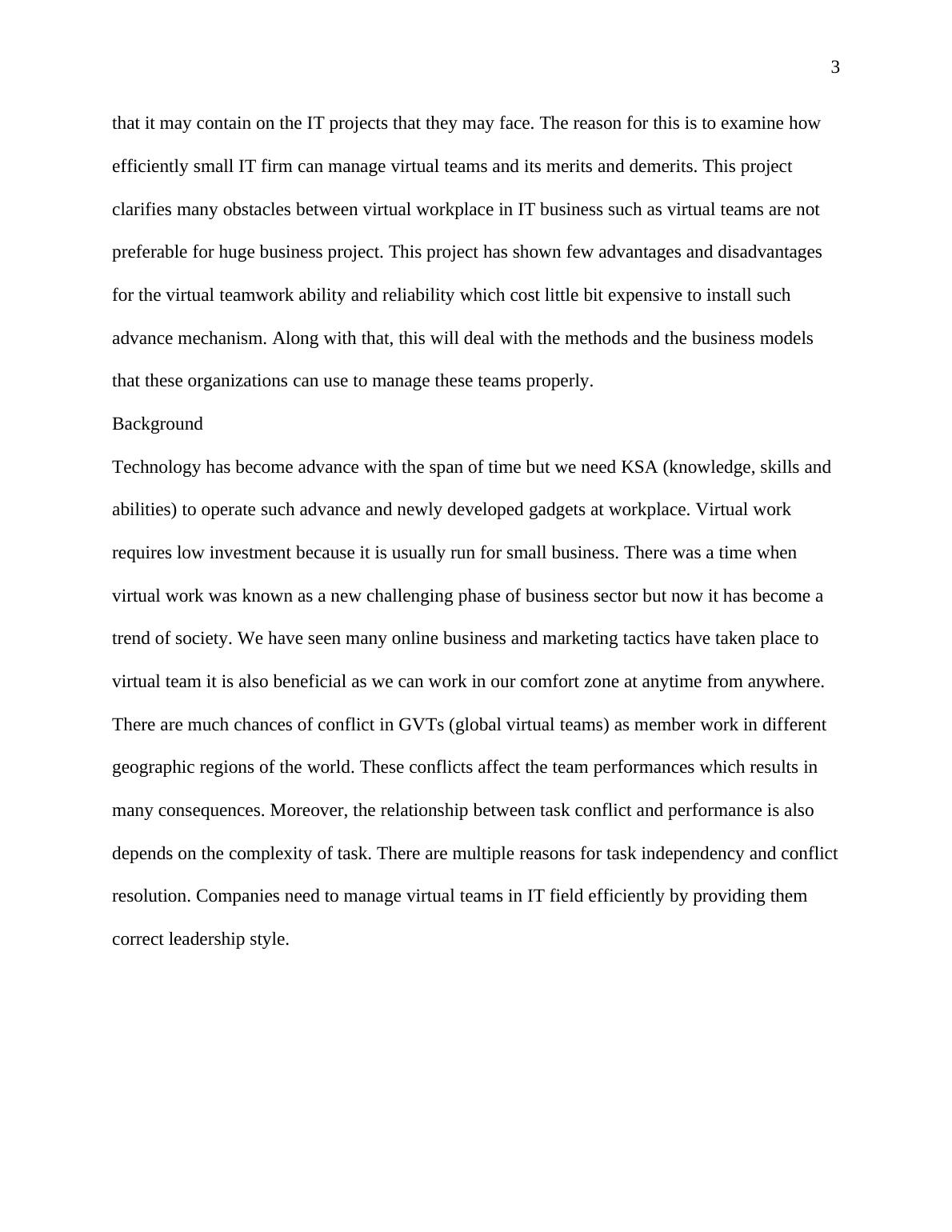 efficiently small IT firm can manage virtual teams and its merits and demerits. This project