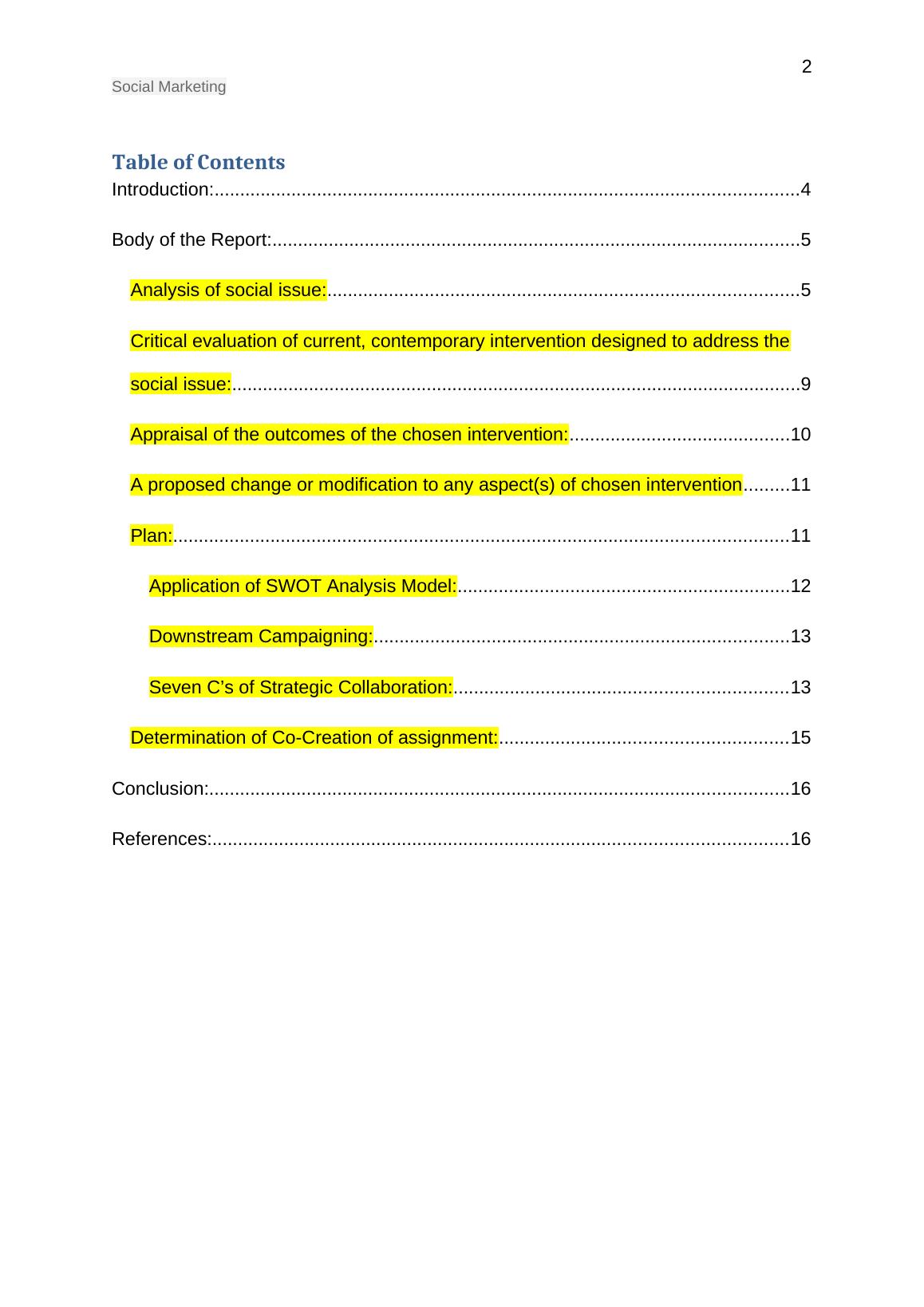 intervention. The social marketing intervention plan needs to be appraised for its