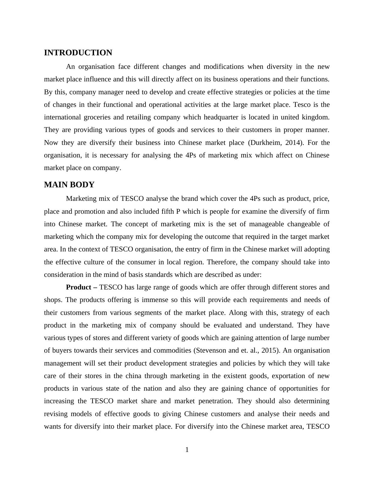 Now they are diversify their business into Chinese market place (Durkheim, 2014). For the