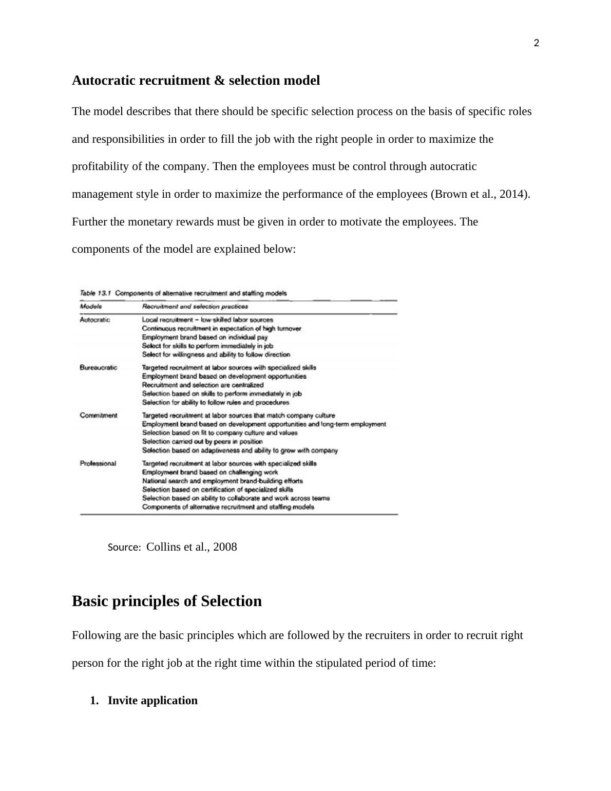 Autocratic recruitment & selection model