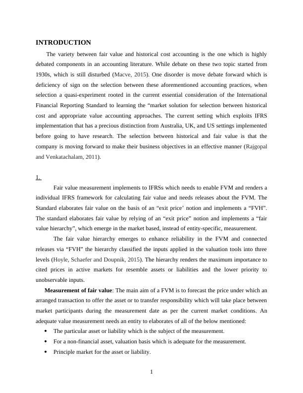 cost and appropriate value accounting approaches. The current setting which exploits IFRS