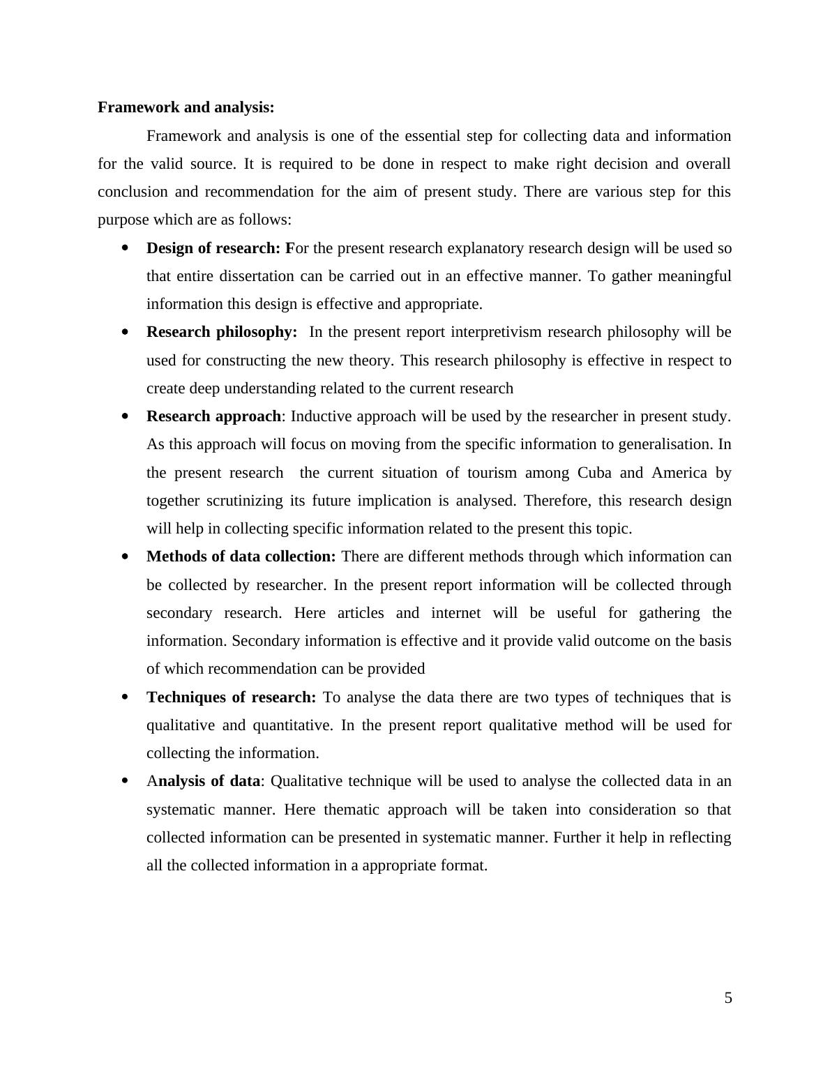 Aim: “To analyse the current situation of tourism among Cuba and America by together