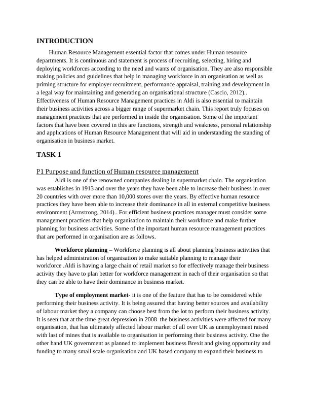 workforce .Aldi is having a large chain of retail market so for effectively manage their business
