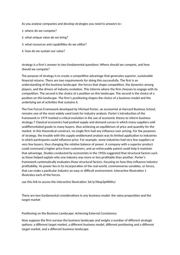 As you analyse companies and develop strategies you need to answers to :