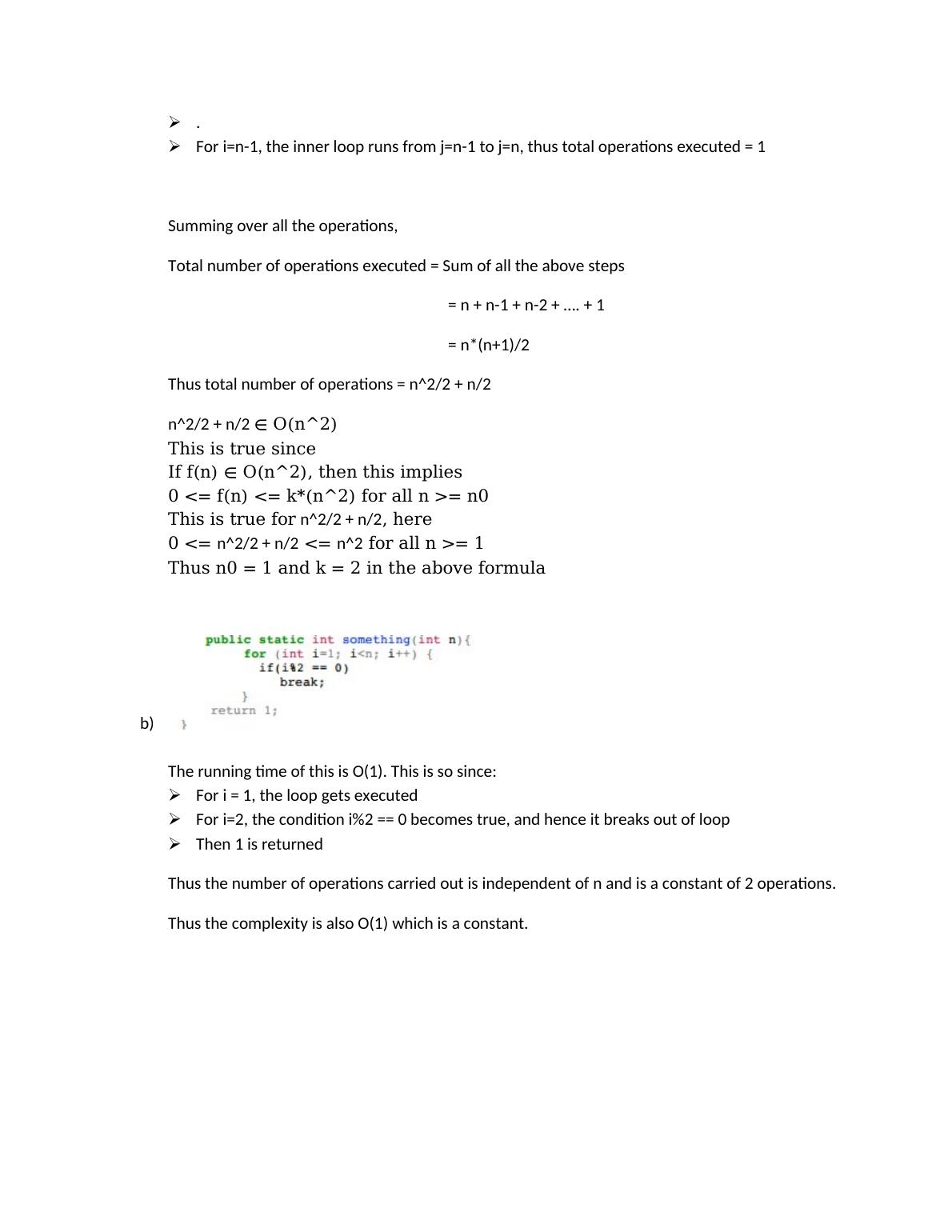 For i=n-1, the inner loop runs from j=n-1 to j=n, thus total operations executed = 1