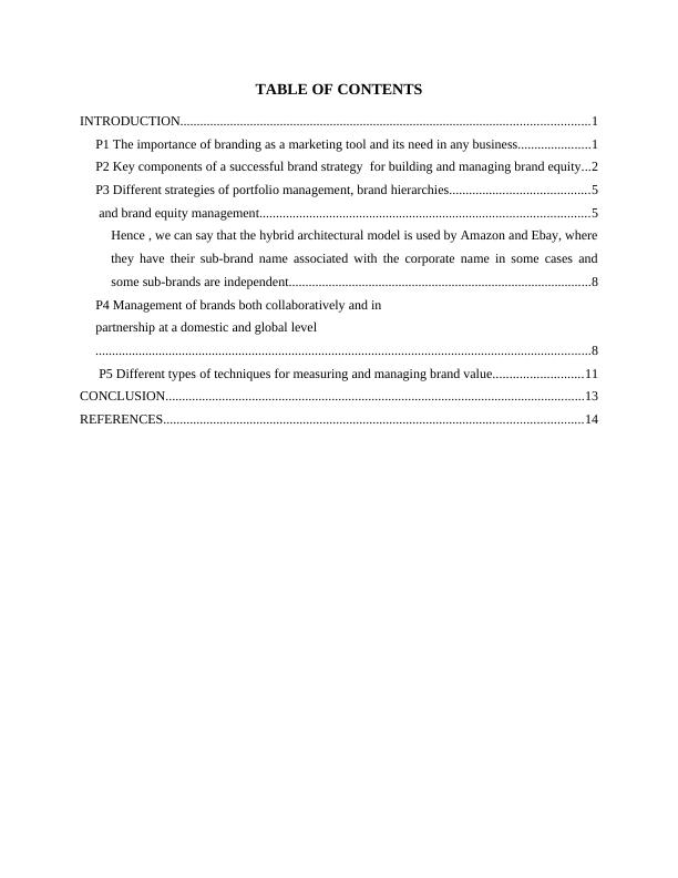 P5 Different types of techniques for measuring and managing brand value...........................11