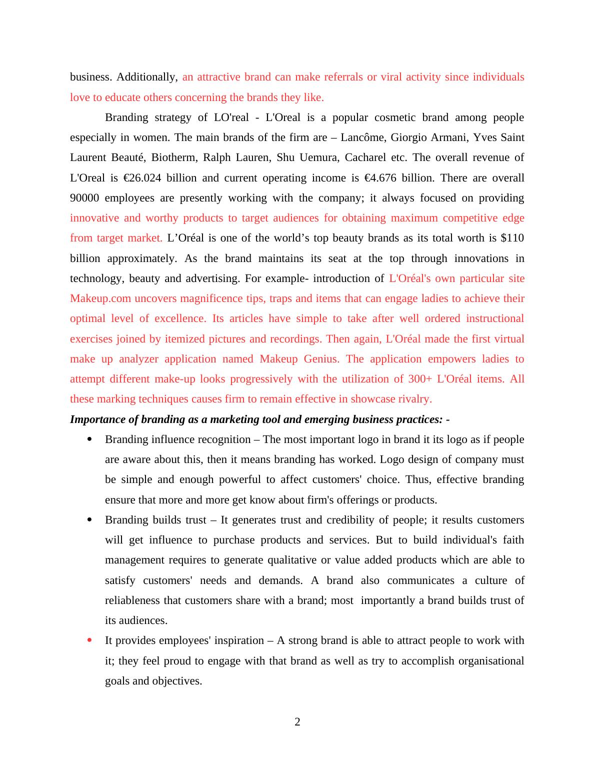 Branding strategy of LO'real - L'Oreal is a popular cosmetic brand among people
