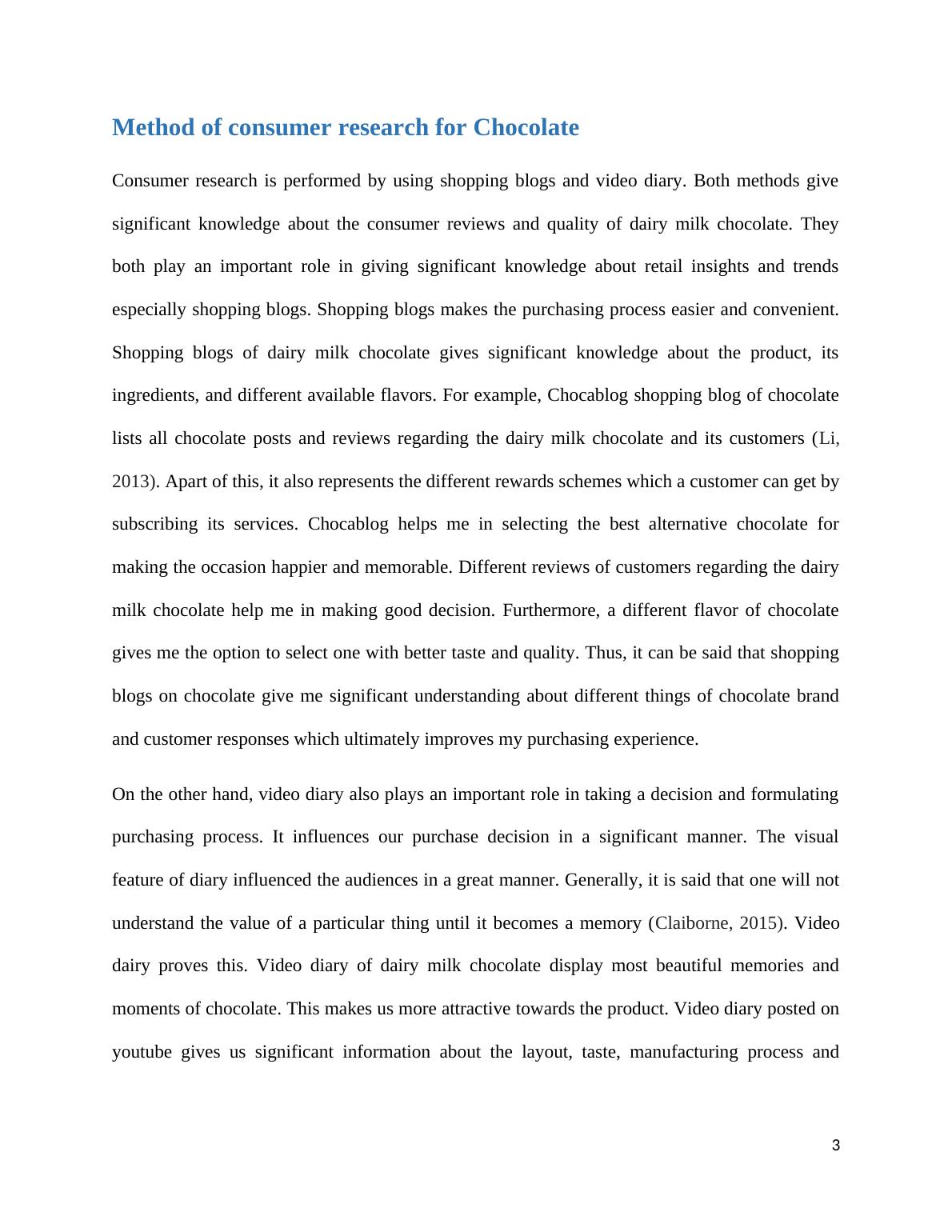 making process. Mainly the decision-making process of chocolate largely influenced by