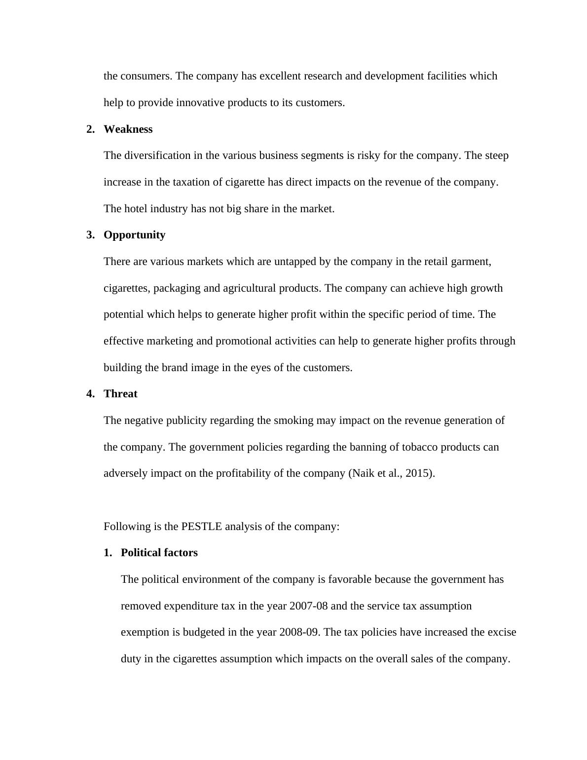 adversely impact on the profitability of the company (Naik et al., 2015).