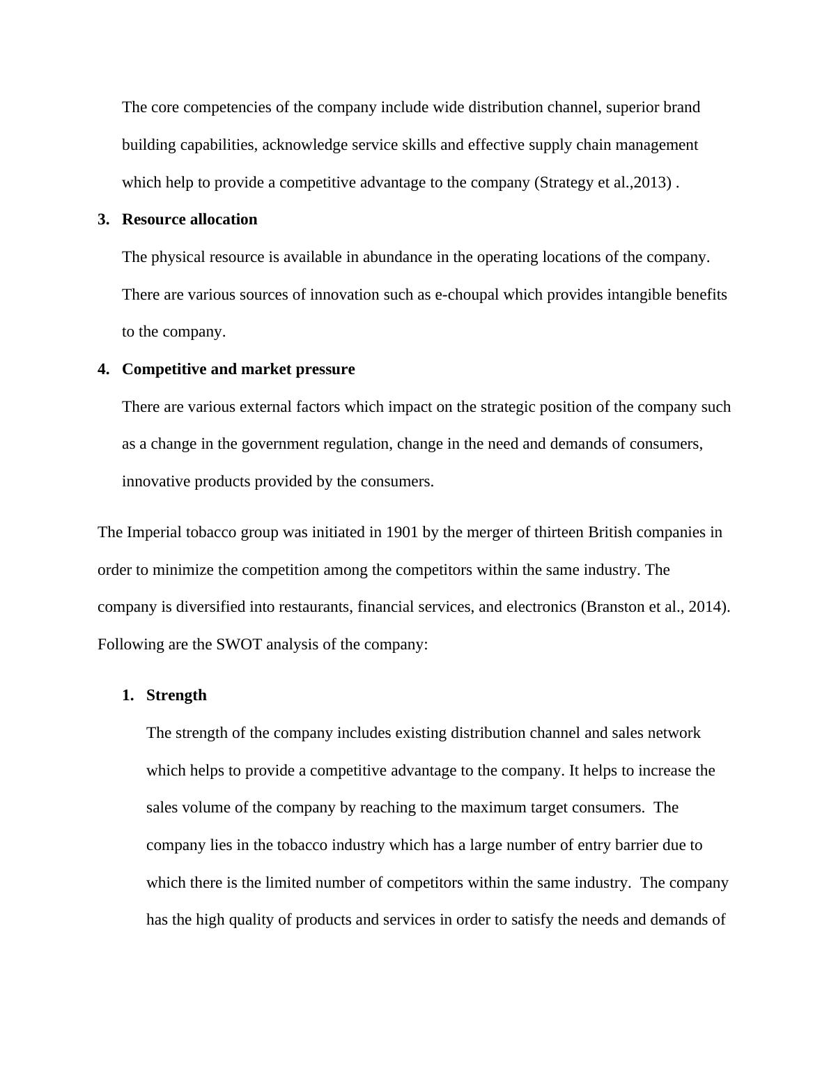 The Imperial tobacco group has rich resources which help to provide a competitive advantage to