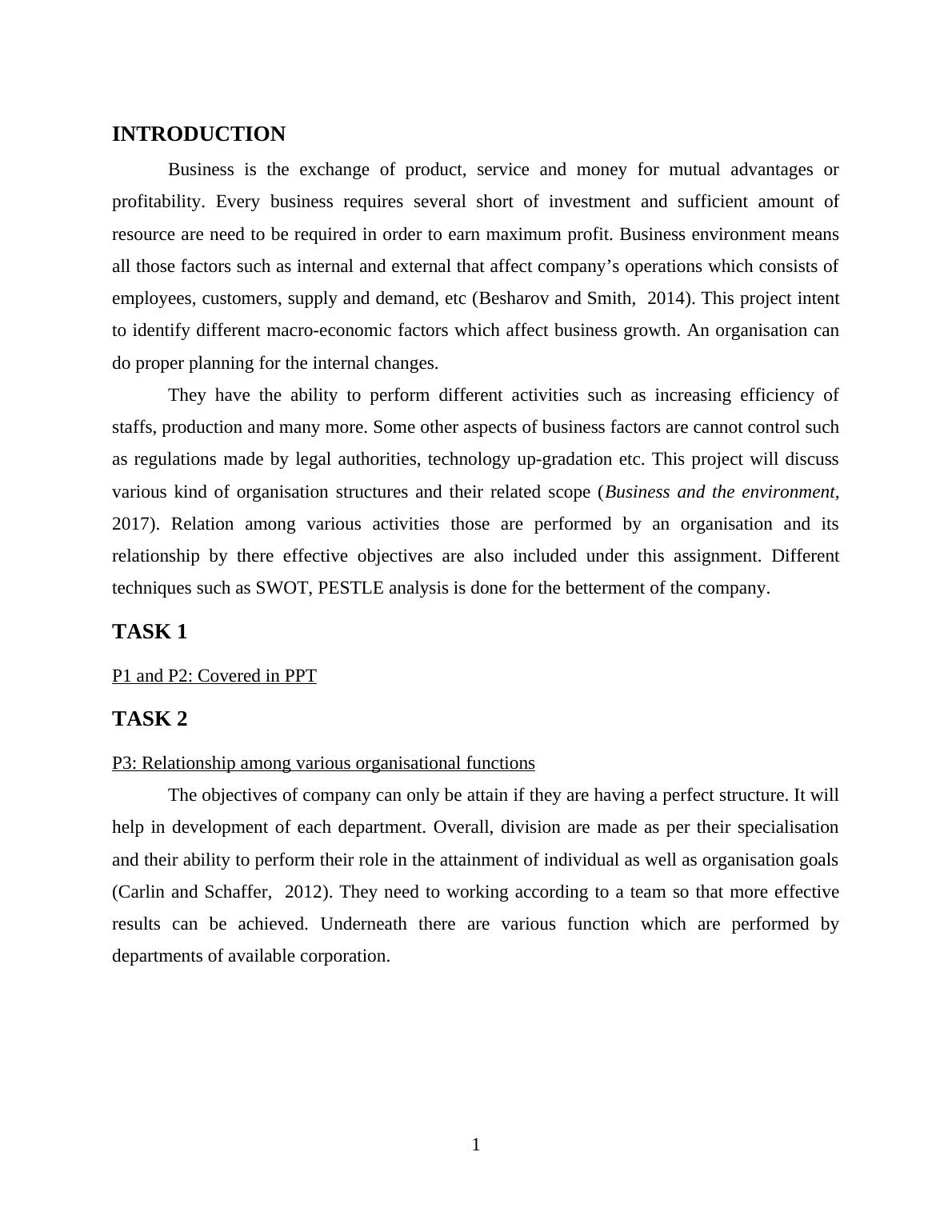 employees, customers, supply and demand, etc (Besharov and Smith, 2014). This project intent