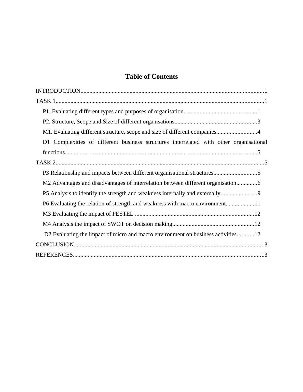 P1. Evaluating different types and purposes of organisation.................................................1