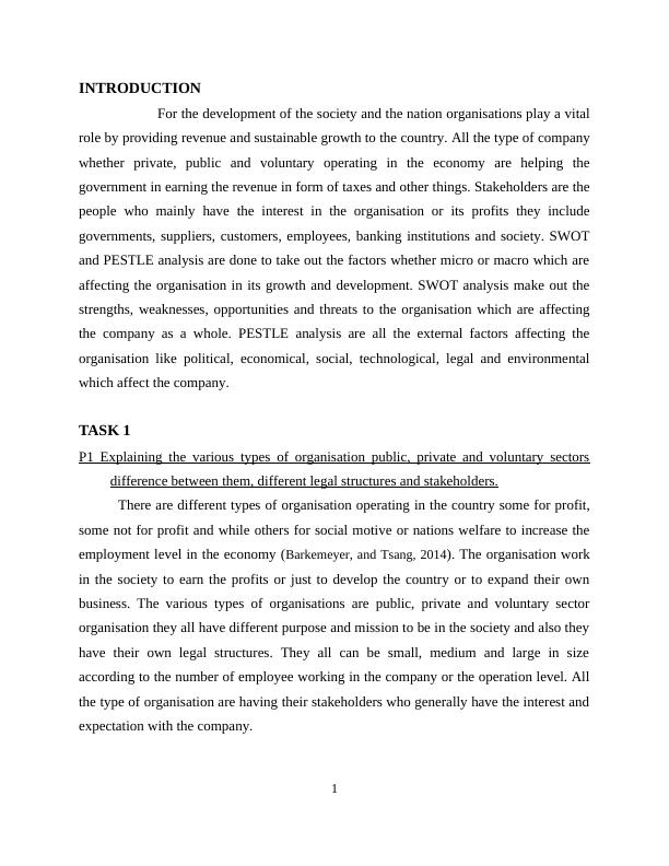 P1 Explaining the various types of organisation public, private and voluntary sectors