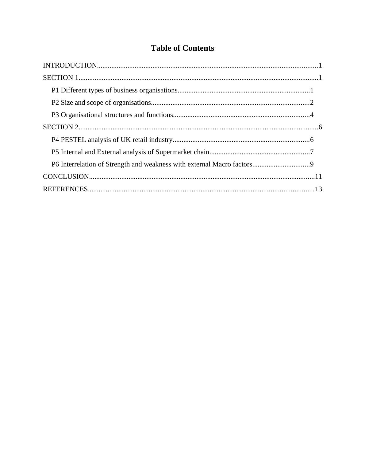 P5 Internal and External analysis of Supermarket chain........................................................7