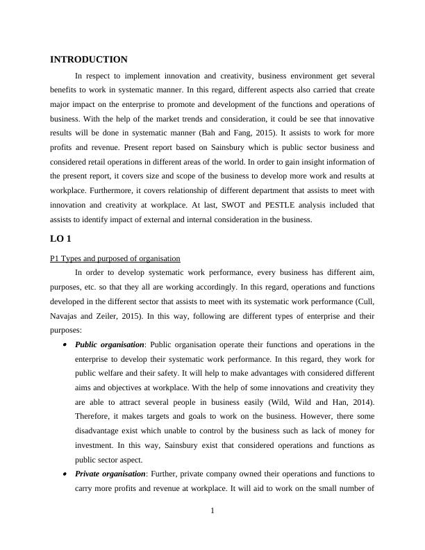 profits and revenue. Present report based on Sainsbury which is public sector business and