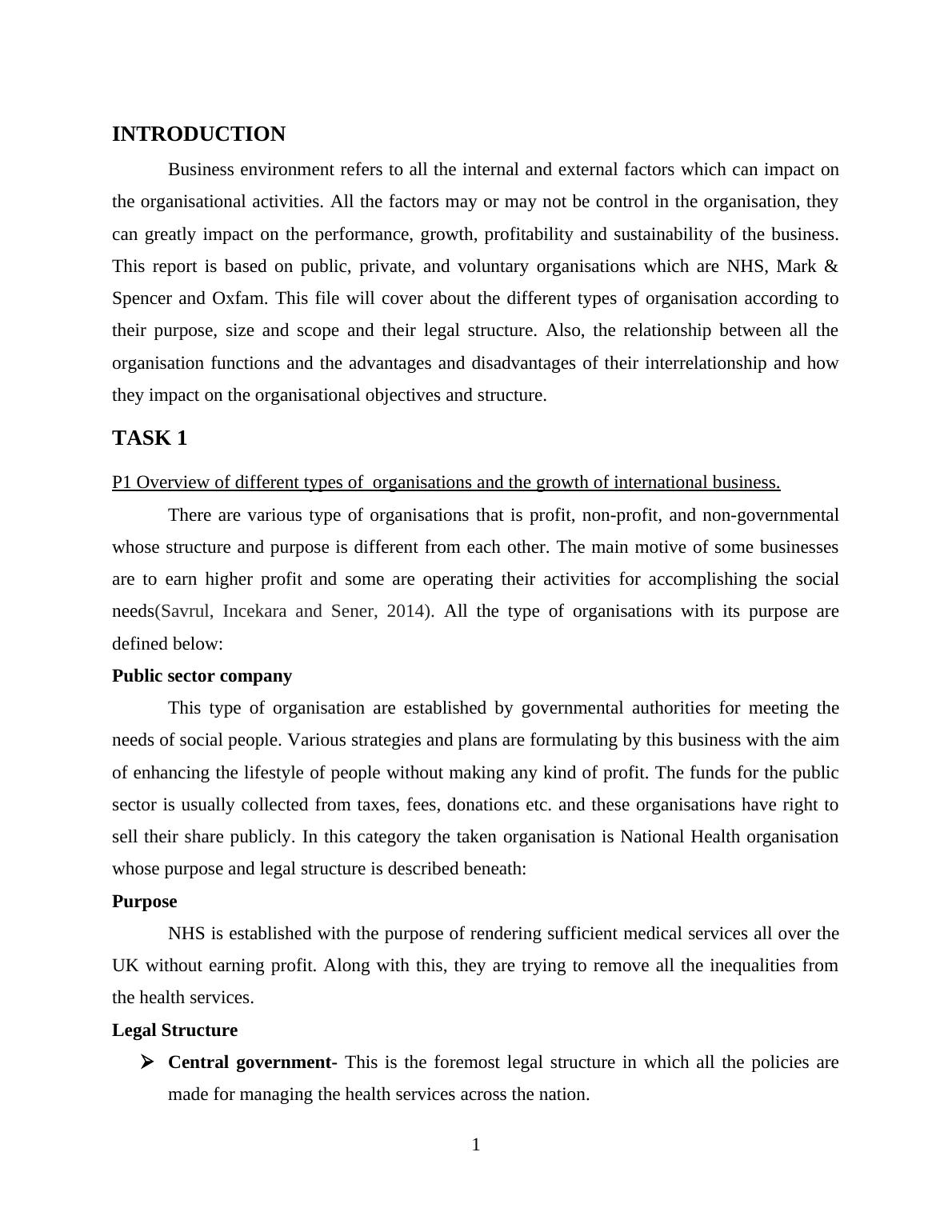 Spencer and Oxfam. This file will cover about the different types of organisation according to