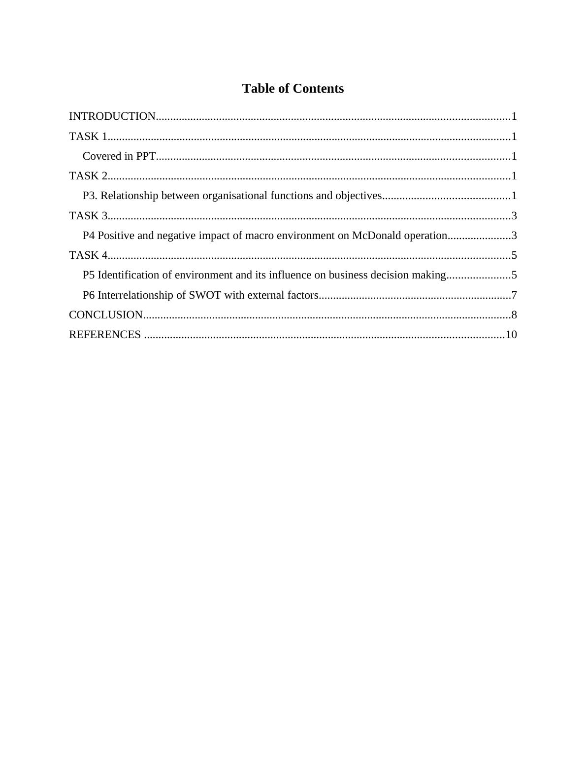 P4 Positive and negative impact of macro environment on McDonald operation......................3