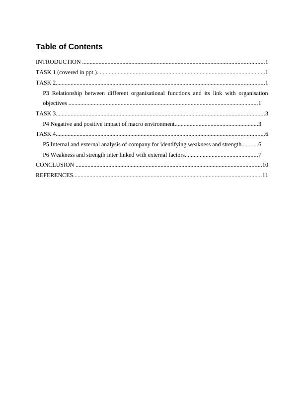 P5 Internal and external analysis of company for identifying weakness and strength...........6
