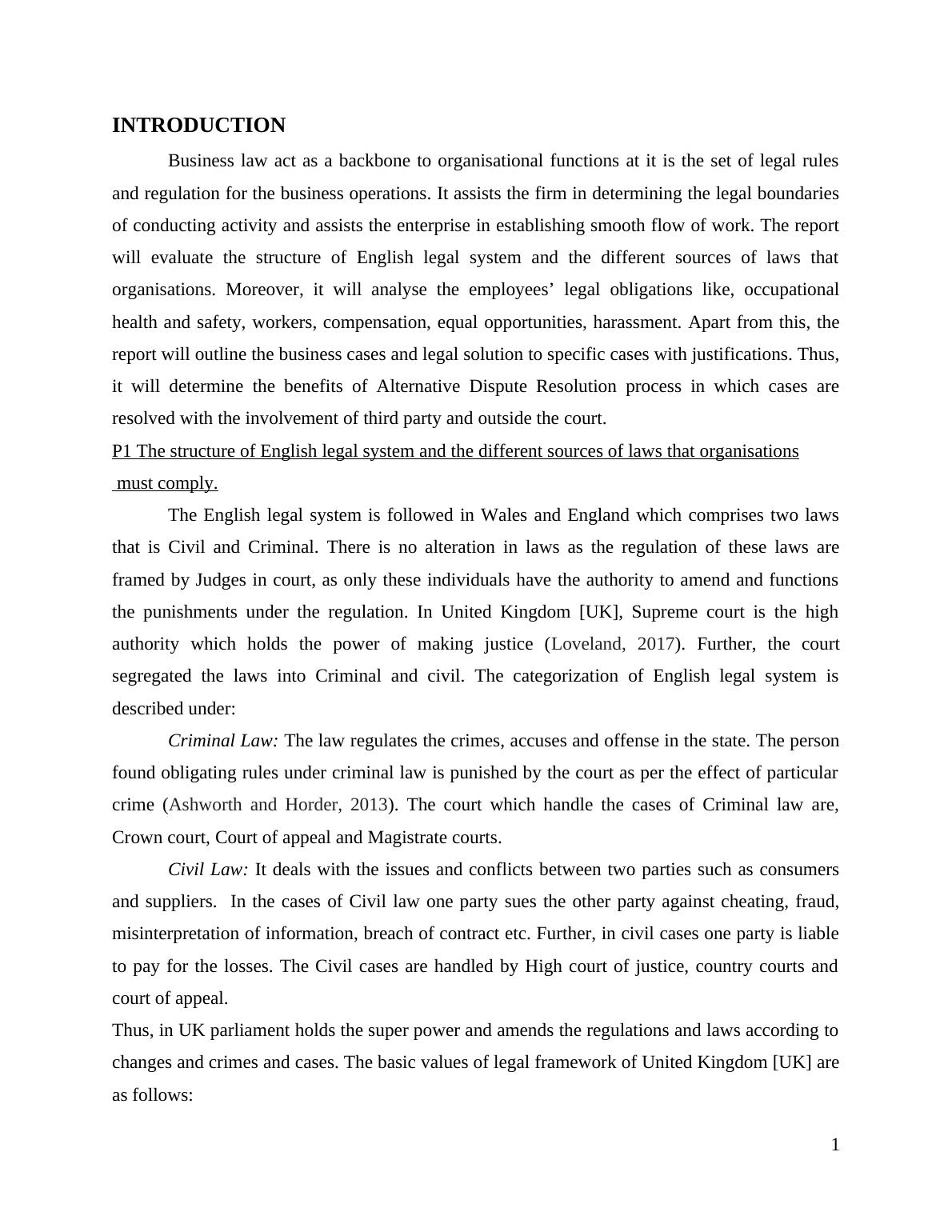 P1 The structure of English legal system and the different sources of laws that organisations