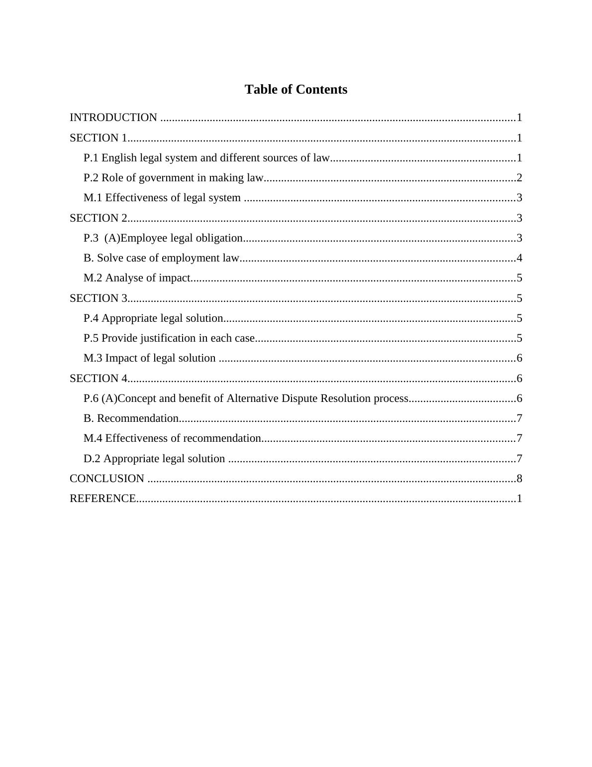 P.1 English legal system and different sources of law................................................................1
