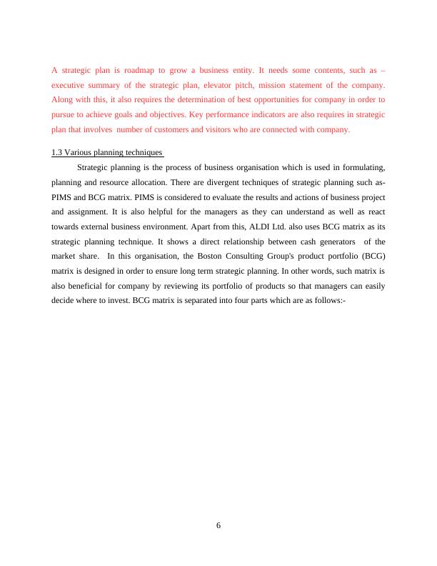Business Strategy Report: ALDI's Strategic Planning and Analysis