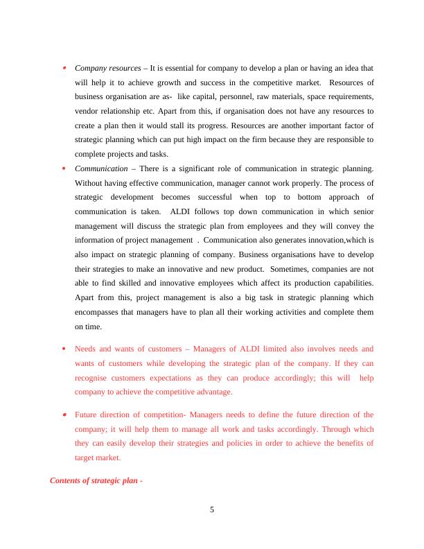 which put their impact on strategic planning of ALDI Ltd. are as follows: - Engagement – The key element of strategic planning process is to engage with all staff
