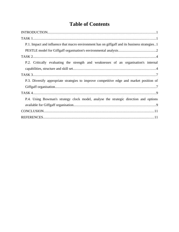 P.1. Impact and influence that macro environment has on giffgaff and its business strategies..1