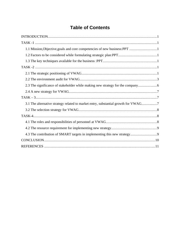 Business Strategy Report: VWAG Strategic Positioning and Analysis