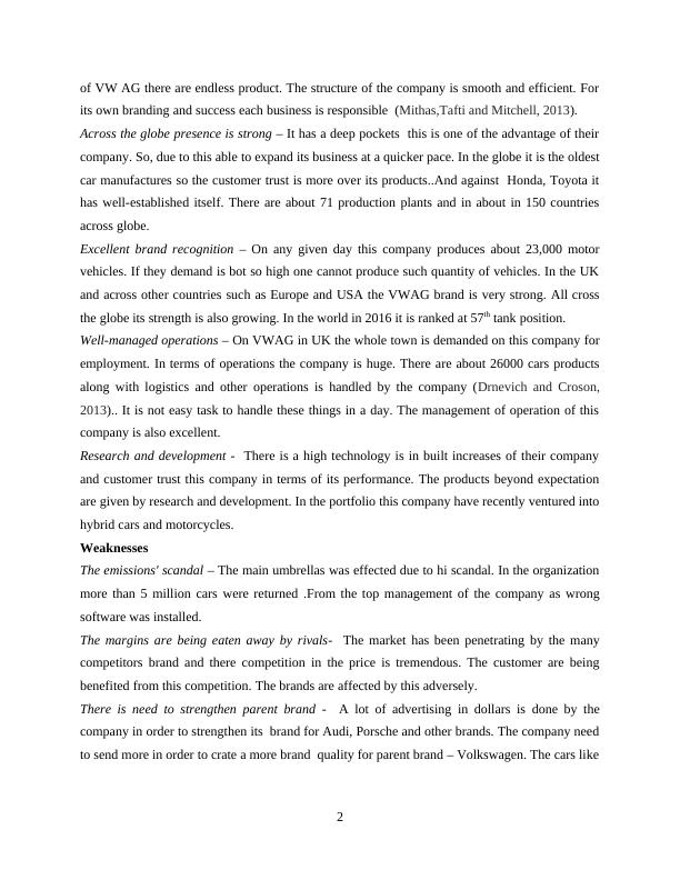 Strength – The strength of VW AG is that it has very well-structured. The high engineered super