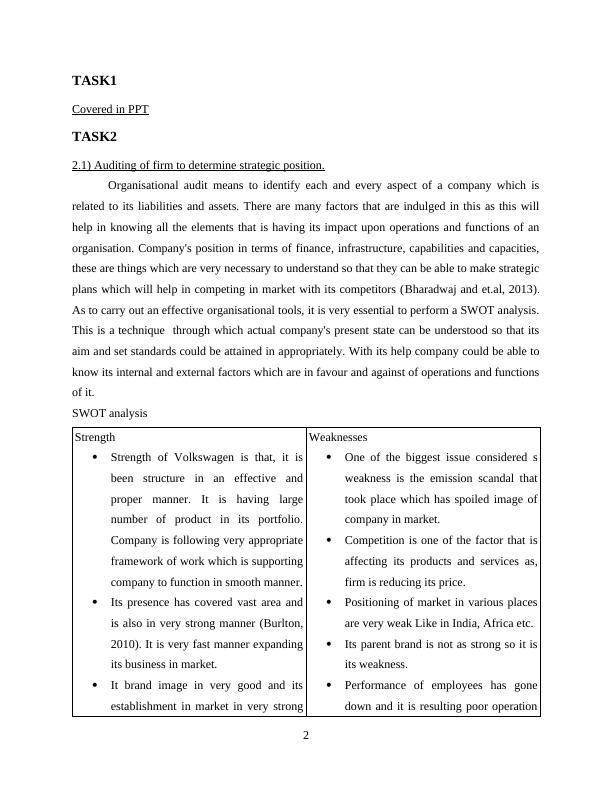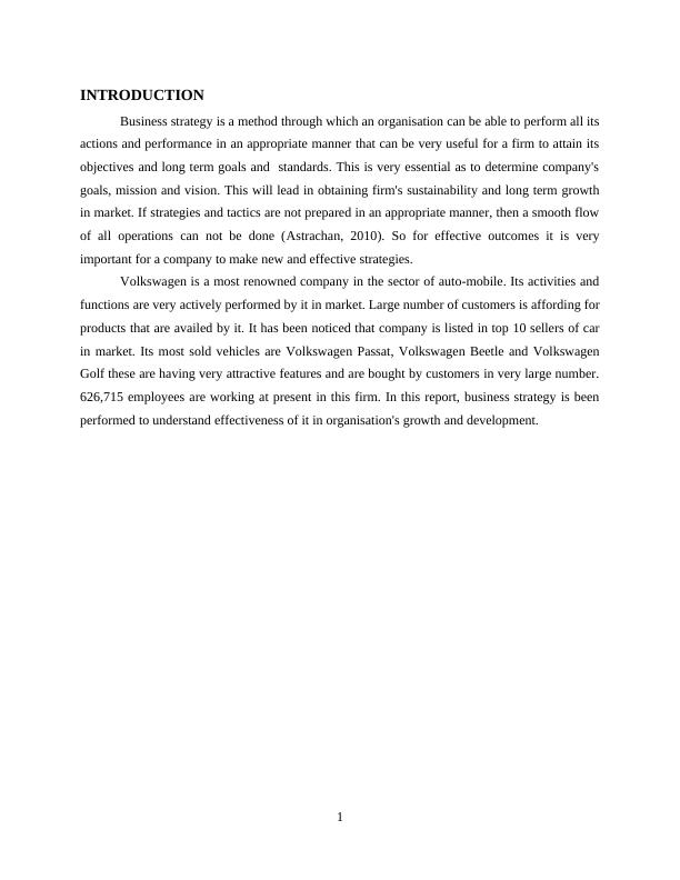 Business Strategy Report: Analyzing Volkswagen's Strategic Approach