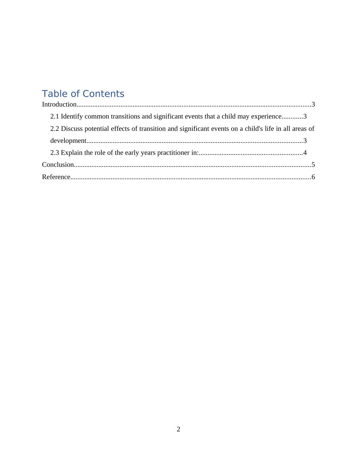 2.1 Identify common transitions and significant events that a child may experience............3