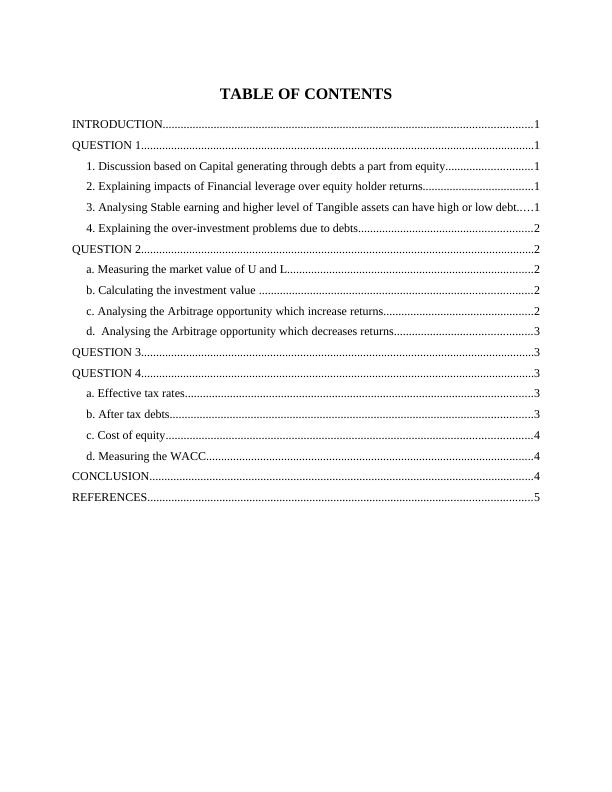 4. Explaining the over-investment problems due to debts..........................................................2