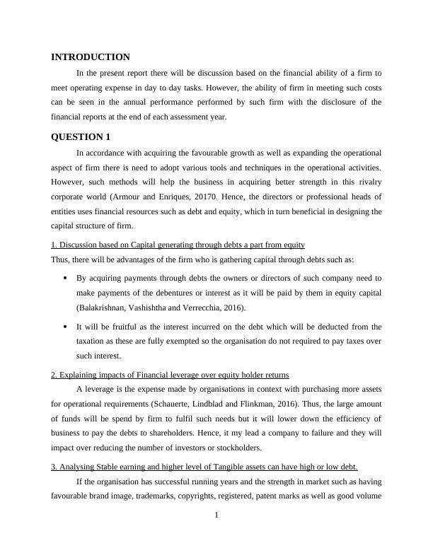 1. Discussion based on Capital generating through debts a part from equity.............................1