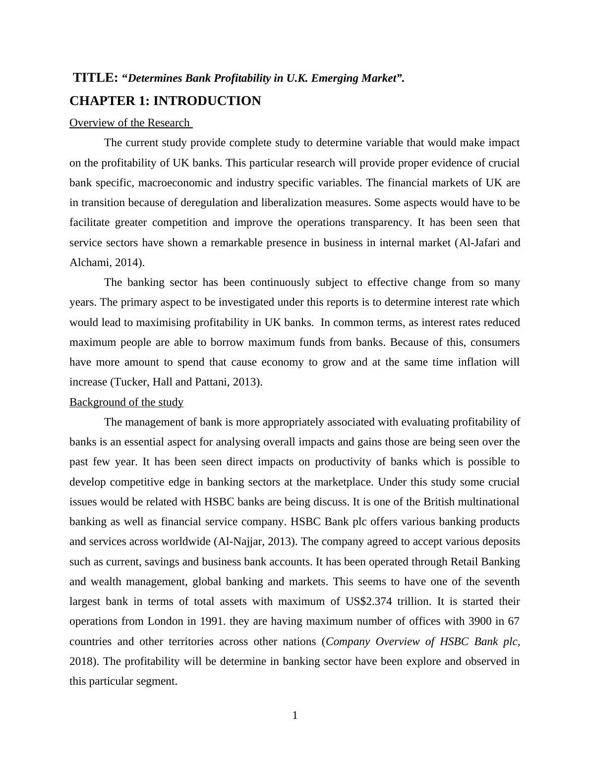 TITLE: “Determines Bank Profitability in U.K. Emerging Market”.............................................1