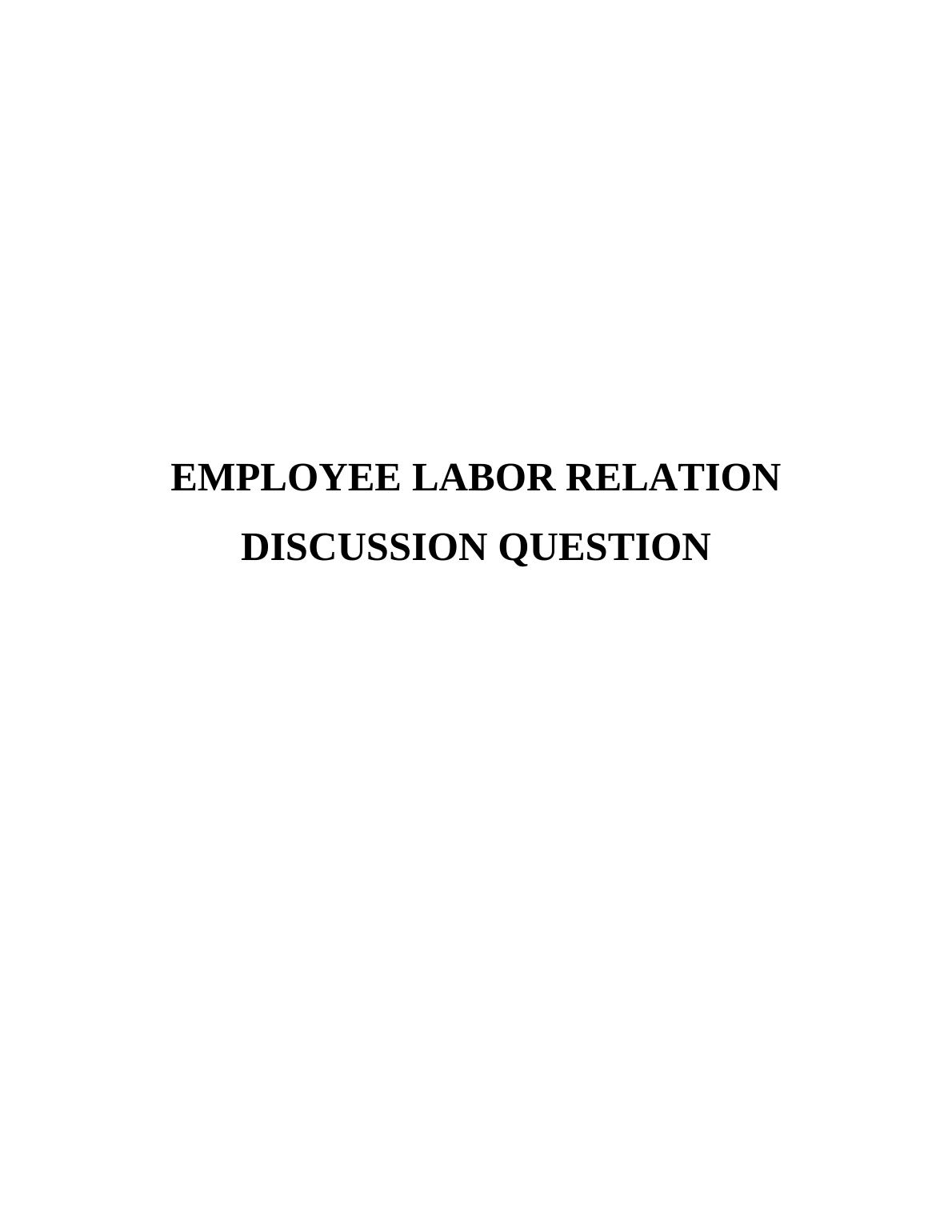 Employee Labor Relations Discussion Assignment Solution Analysis