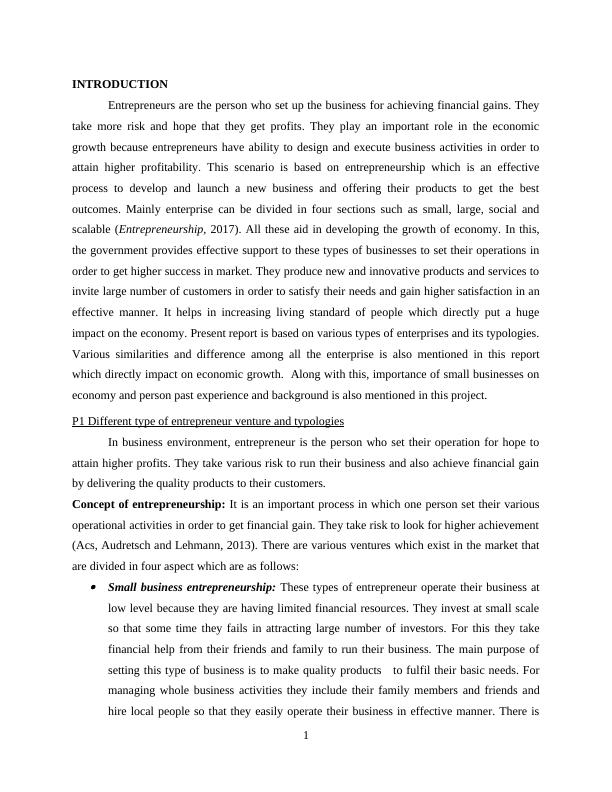 P1 Different type of entrepreneur venture and typologies..........................................................1