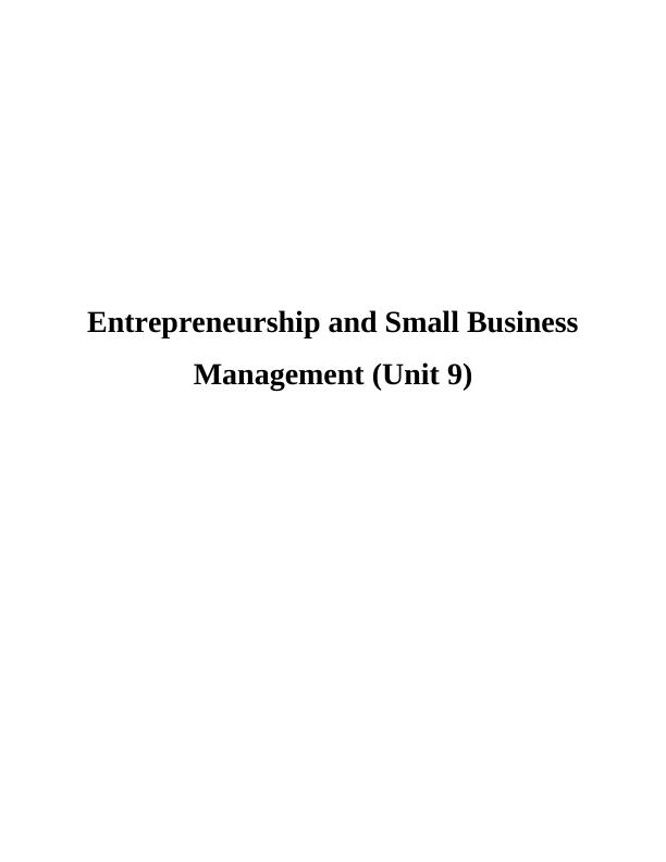 Entrepreneurship and Small Business Management (Unit 9) Report