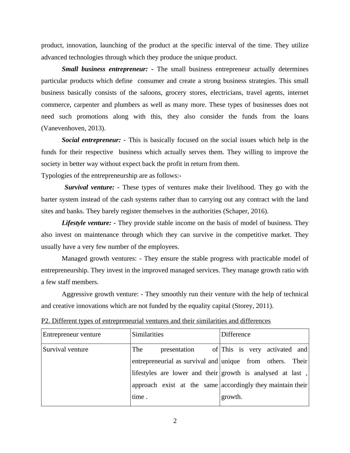 P2. Different types of entrepreneurial ventures and their similarities and differences..........2
