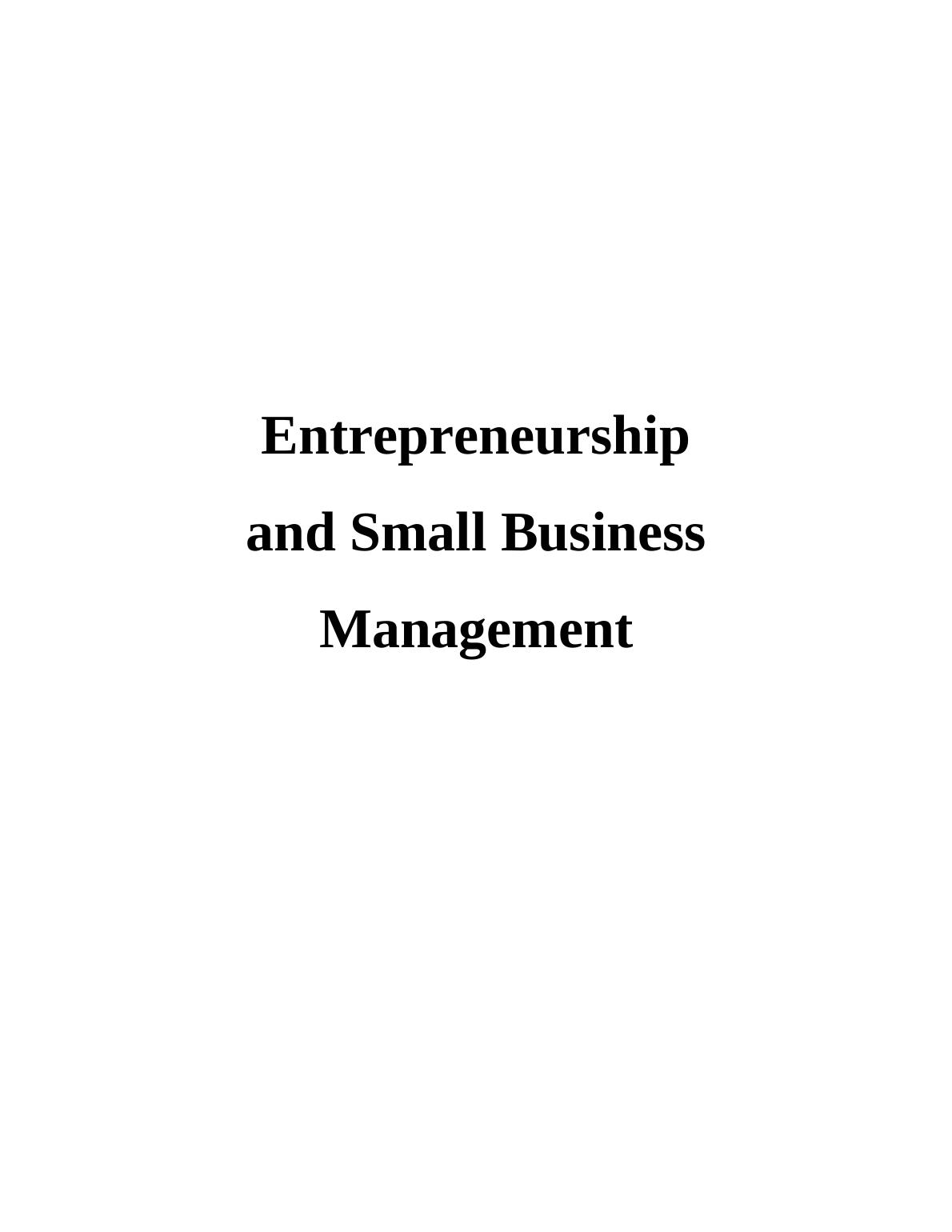 This assignment is going to present all the basic aspects of entrepreneurship and small