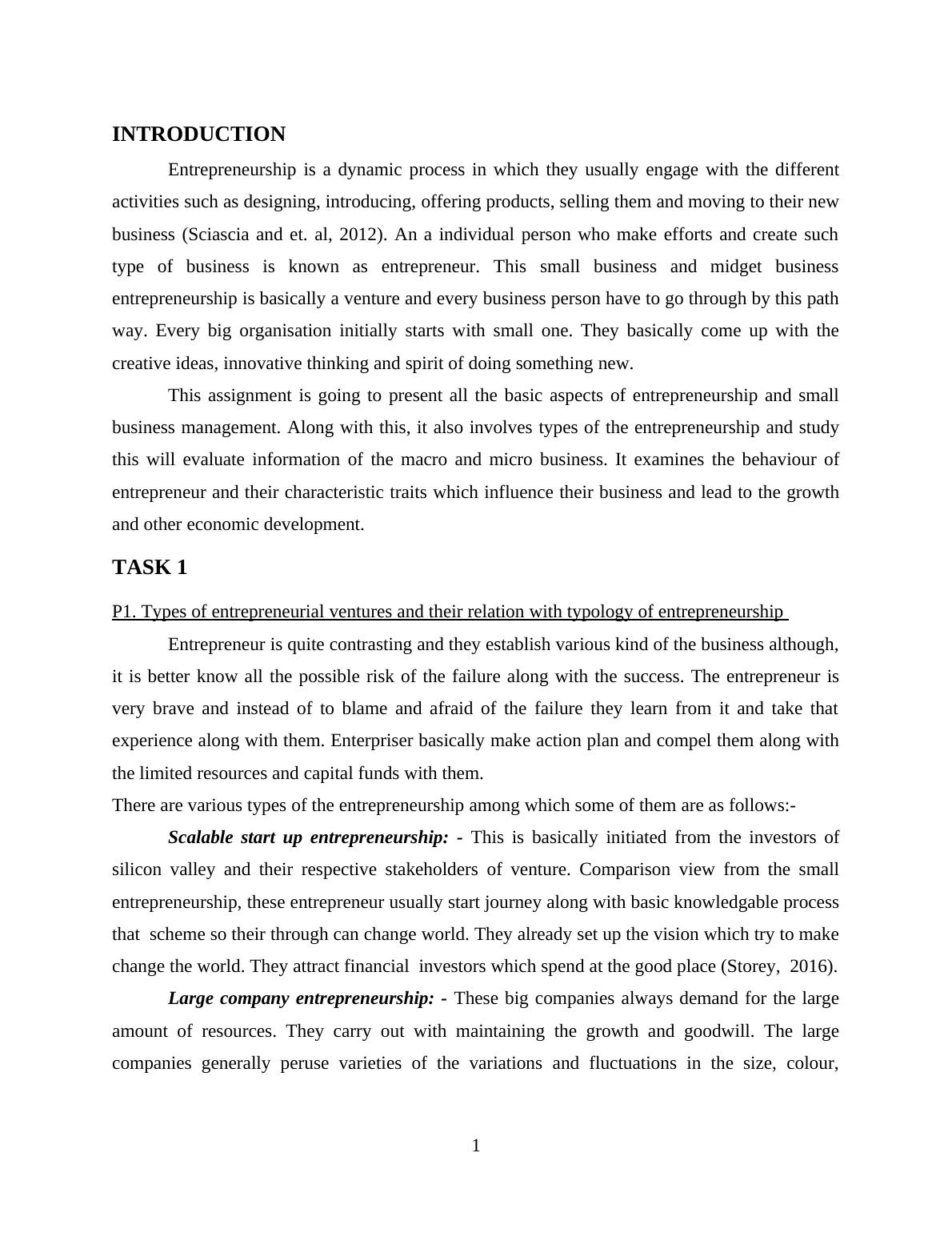 business (Sciascia and et. al, 2012). An a individual person who make efforts and create such
