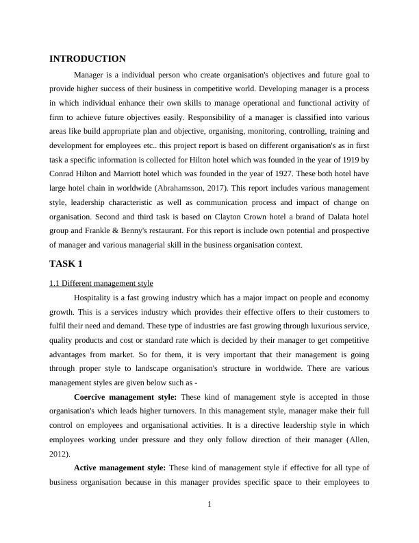 large hotel chain in worldwide (Abrahamsson, 2017). This report includes various management