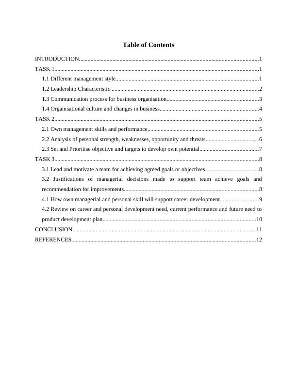 1.2 Leadership Characteristic......................................................................................................2