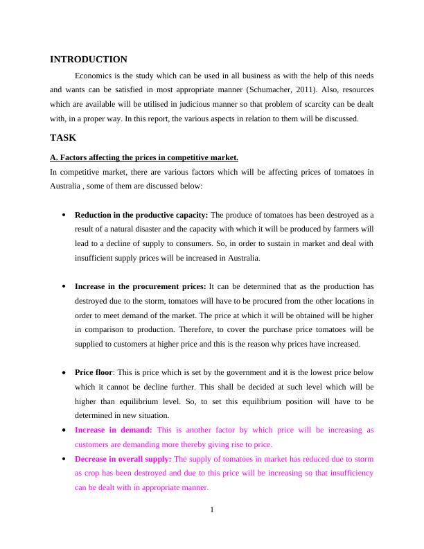 A. Factors affecting the prices in competitive market............................................................1