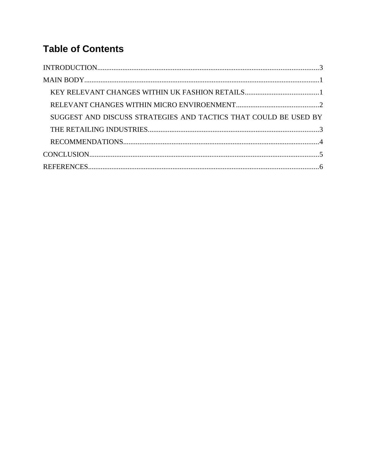 KEY RELEVANT CHANGES WITHIN UK FASHION RETAILS.........................................1