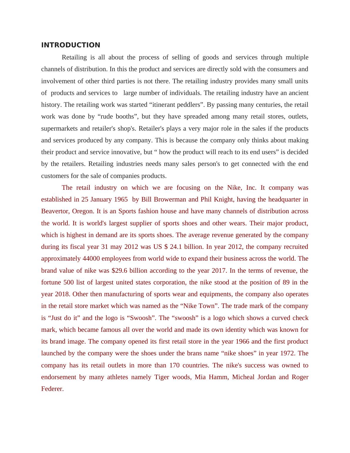 The retail industry on which we are focusing on the Nike, Inc. It company was