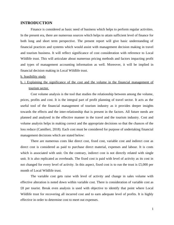 and tourism business. It will reflect significance of cost consideration with reference to Local