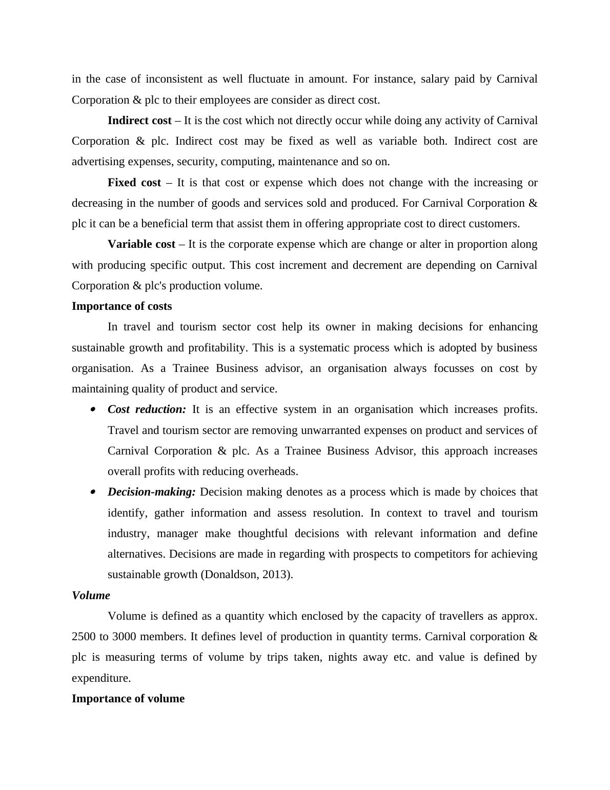 company and world largest travel leisure company. Relevant importance of cost and volume with