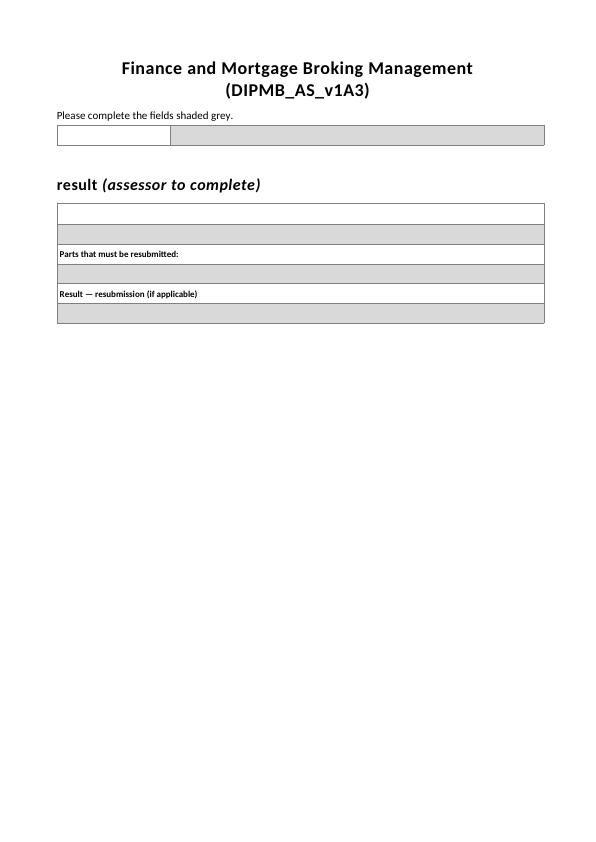 This assignment is for the Diploma of Finance and Mortgage Broking Management course, focusing on complex lending, broking, and business management skills. The assignment is divided into two sections. Section 1 requires answering questions based on case studies related to different lending scenarios. Section 2 involves completing tasks related to business management skills. The assignment includes details about Capital City Finance and Mortgage Brokers (CCF & MB), its services, partners, and team members, along with instructions for completion, submission, and grading. The goal is to apply knowledge of financial principles and demonstrate competence in broking and business management practices, with a focus on strategic alliances and business expansion.