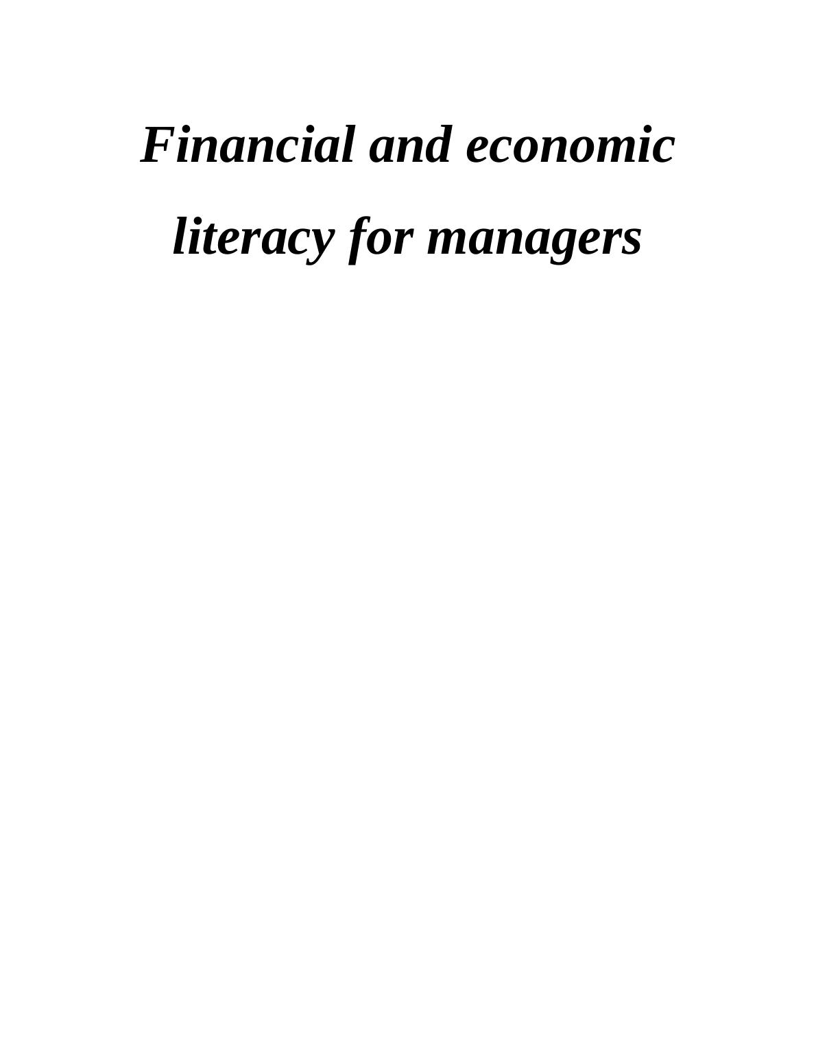 This report provides a comprehensive overview of financial and economic literacy for managers, encompassing various aspects crucial for business success. It begins by exploring market structures, particularly focusing on Apple's strategies within monopolistic and oligopolistic environments, and how they adapt to globalization and technological advancements. The report then delves into microeconomic and macroeconomic principles, examining the relationship between price and demand, supply dynamics, and different types of goods like substitute, normal, giffen, and complementary goods. Furthermore, it analyzes government policies, including competition, fiscal, and supply-side policies, and their impact on economic growth, inflation, and unemployment. The report also discusses the importance of financial statements and ratio analysis for decision-making, alongside investment techniques such as IRR and net present value. Overall, the report offers valuable insights into the financial and economic concepts essential for effective management in the business world.