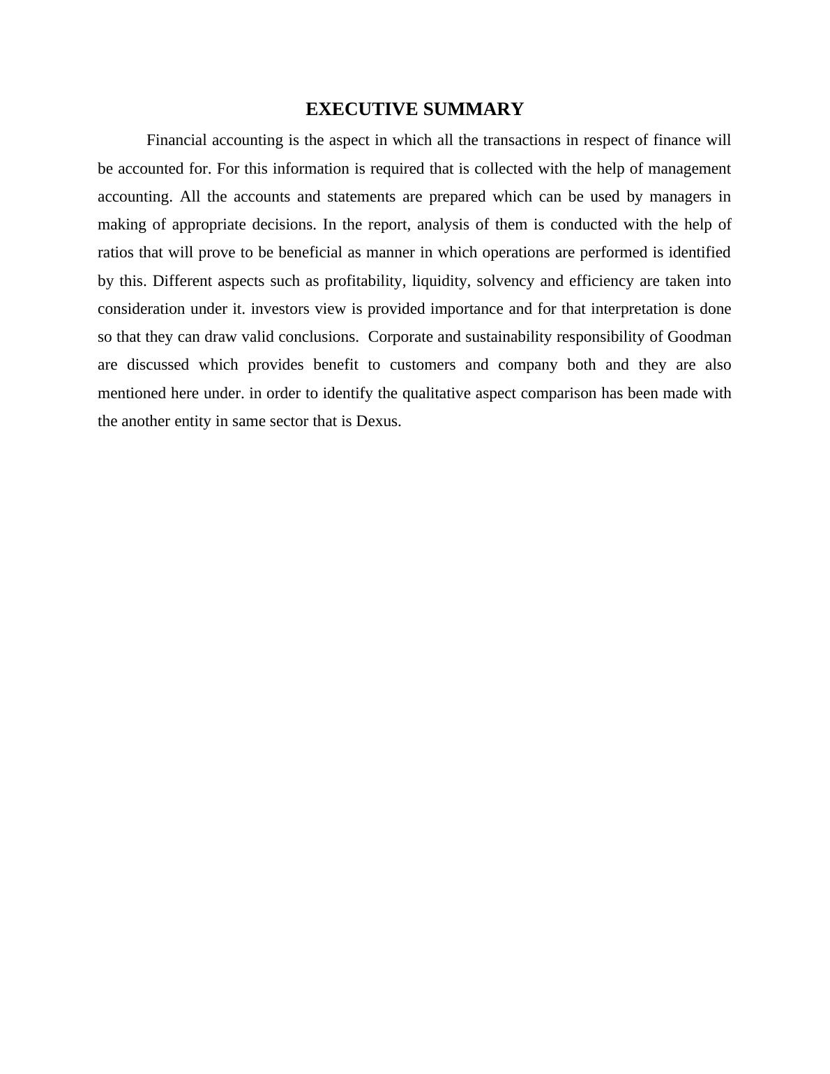 made by taking Goodman group which is dealing in real estate. By the help of this it will be